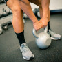 In contrast to training with other weights, the Kettlebell has the center of gravity of the training weight outside the hand. This means that the torso-stabilizing muscles always work with it. In addition, the dynamic exercises increase the condition and stimulate fat burning. Therefore the ball weight is also suitable for training units in HIIT or TABATA style. The goal of training with the ball weight is above all to build up functional strength, explosive power and stability and to strengthen the cardiovascular system as well as tendons and ligaments.